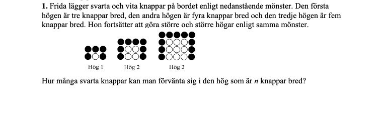 Hur många svarta knappar kan man förvänta sig i den hög som är n knappar bred?
