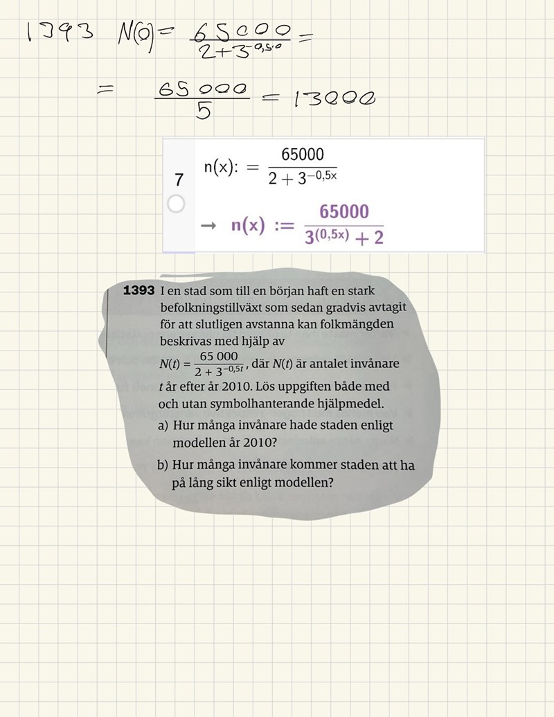 försöker lösa en uppgift men tycker att det GeoGebra visar i lila vid funktionsdefiniering är lite märkligt. Om man observerar nämnaren så ändras exponenten helt plötsligt i högra termen. Är uttrycken verkligen likvärdiga om exponenten byter tecken? Är det något jag missat?