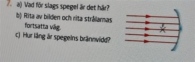 Hej! Jag undrar lite hur jag ska lösa uppgiften. Det står inget konkret svar i texten på hur man tar reda på brännvidden. Jag vet att brännvidden är avståndet mellan brännpunkten och spegeln men det känns orimmligt att mäta med linjal. Jag misstänker att det är någt annat de syfftar på.