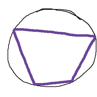 Nåväl. Rita en cirkel. Rita en fyrhörning i cirkeln så att ett av hörnen är lite drygt 45 grader (en halv rät vinkel) och ett närliggande hörn är lite knappt 45 grader.