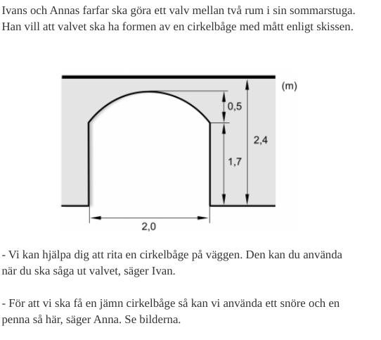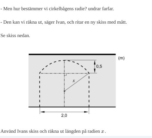 Krysset i bilden ligger i cirkelns mittpunkt. Därför är avståndet från krysset till en punkt på cirkelbågen = radien = x.
