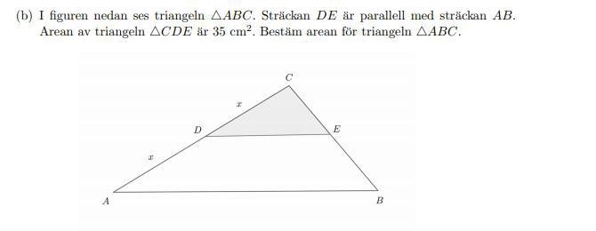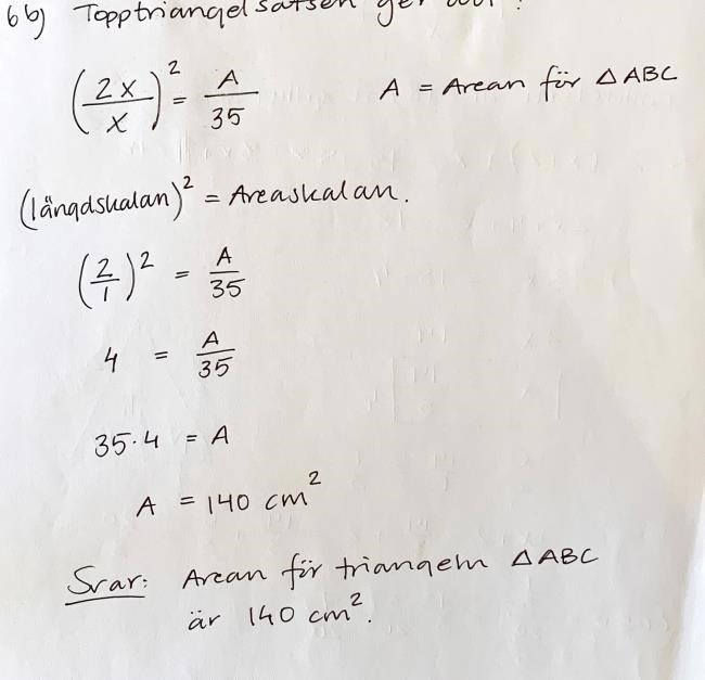 Kan någon förklara lösningen för mig? Varför tog han (2x/x)^2? Varför upphöjt till 2? Sedan förstår jag inte varför man tog A/35. Vart är sambandet?