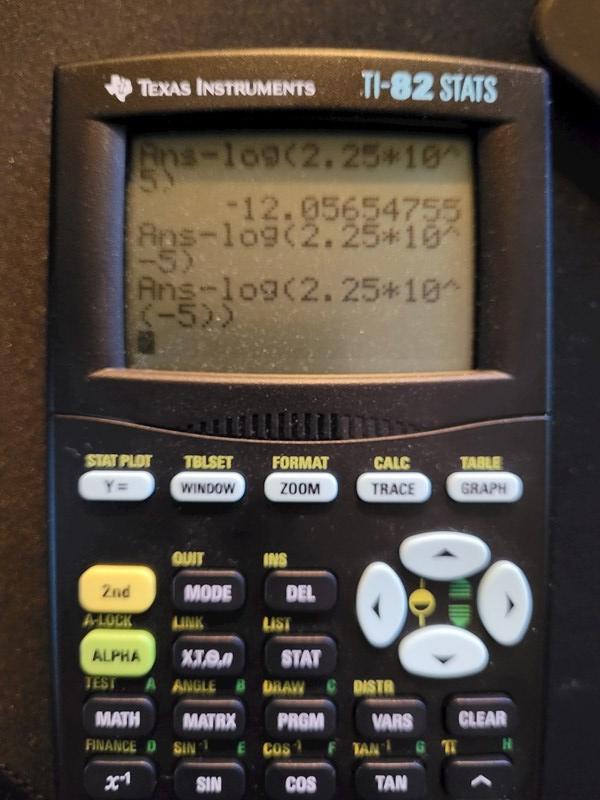 Försöker räkna oxonium koncentrationer. Slår jag in t.ex. -log(2.25*10^-5) så får jag "ERR: SYNTAX"