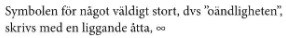 Jag har sett i någon bok (Liber?) som skrev att oändligheten är "ett väldigt stort tal".