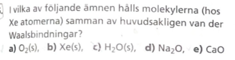 Frågan handlar om vilka bindningar som finns och när vdW dominerar (till skillnad från exempelvis vätebindningar eller jonbindningar).