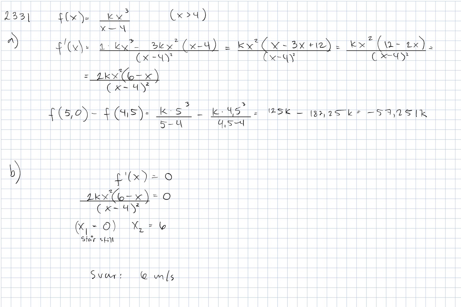 Din ansats med f(5,0)-f(4,5) som svar på a-uppgiften är rätt.