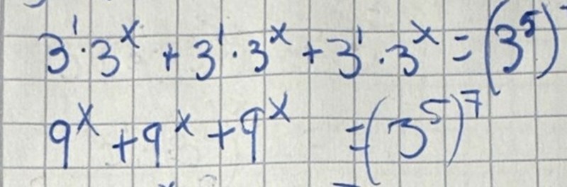 ska man skriva det som 3^(x+1) adderat med sig självt 3 gånger. kan man skriva det som 3*3^(x+1) då?