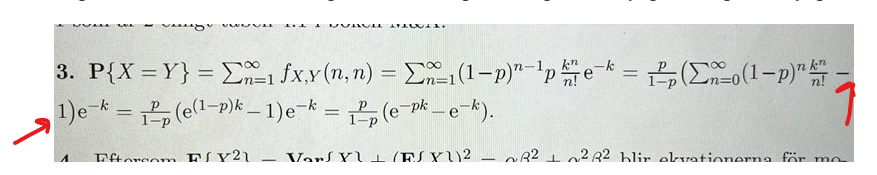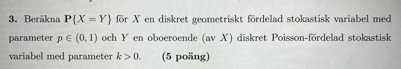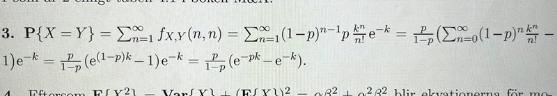 Sedan minns vi att , alltså vi frågar oss vad sannolikheten är att slumpvariablerna ska anta samma värde. Det blir då helt enkelt summan av varje värde av för varje .