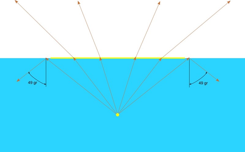 Förstår inte varför kritiska vinkeln ger en cirkulär ljusfläck (totalreflexion)