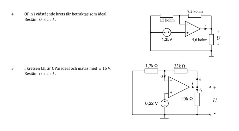 Har även använt op lagarna. Men kommer inte fram till rätt svar. Kan du ge mig något förslat på hur jag kan börja? Hur jag ska räkna, sedan kombinera op lagarna och ohms lagar. Tack.