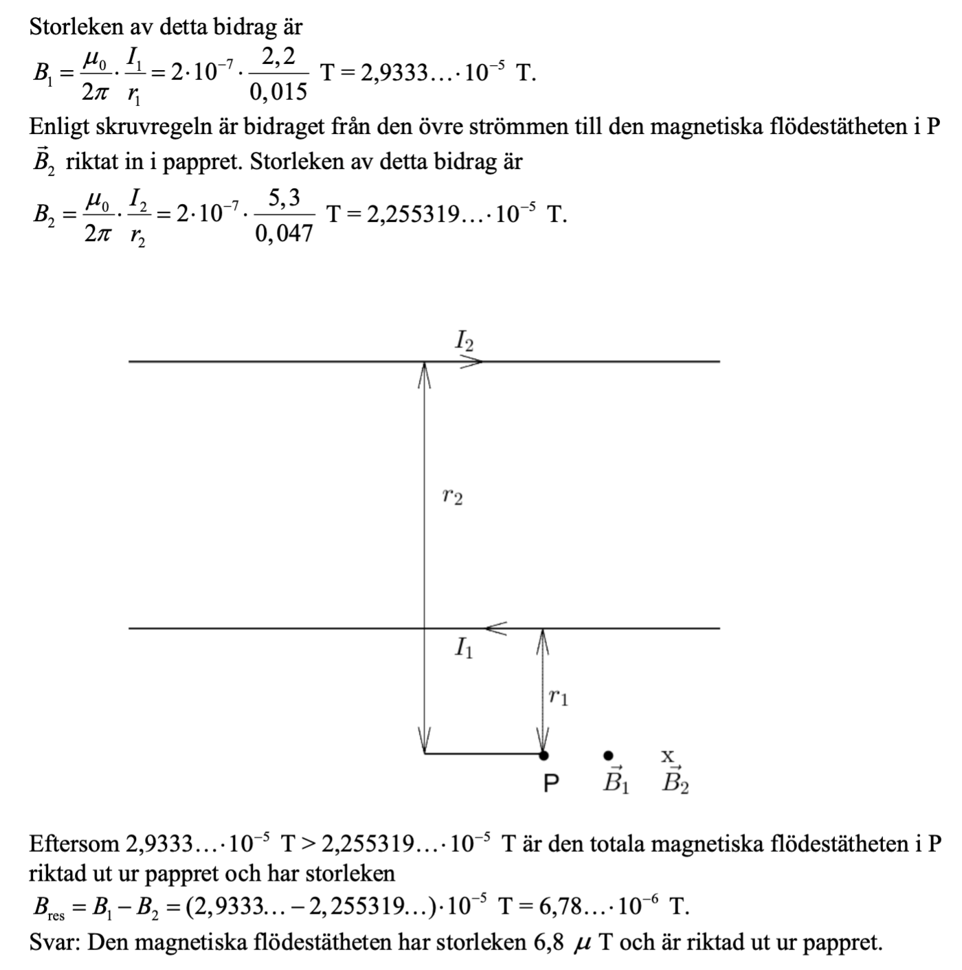 Hur kan magnetiska flödestätheten* riktas ut ur pappret enligt facit?