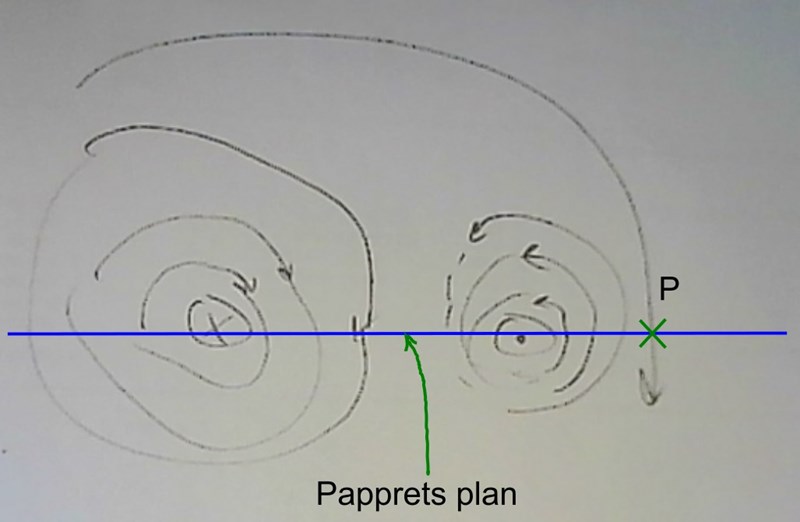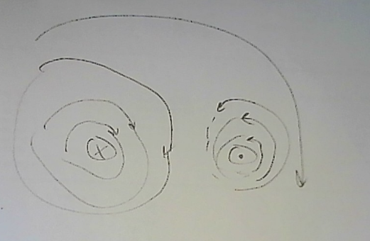 Jag förstår dock inte vad de menar med att den magnetiska flödestätheten är riktad ut ur pappret eftersom jag antog att den liksom roterar medsols eller motsols eftersom tummen i skruvregeln i detta fall skulle innebära ström.