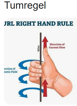 tummen i strömmens riktning, magnetfältet i fingrarnas riktning enl bilden nedan