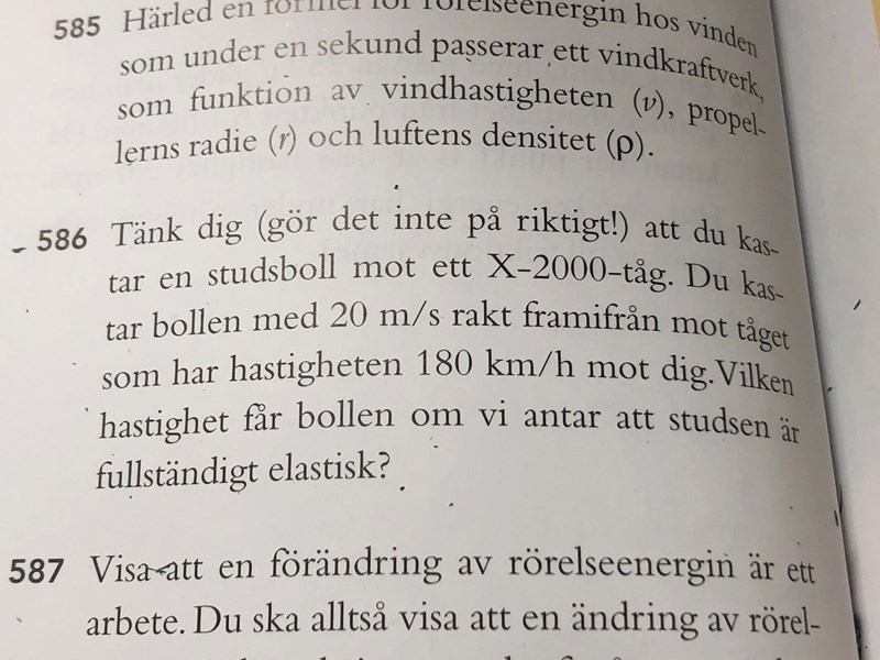 Jag menar bara att jag behövde anta att tennisbollen inte påverkade tågets hastighet tillräckligt mycket för att räkna på det, för då hade jag inte kunnat lösa uppgiften.