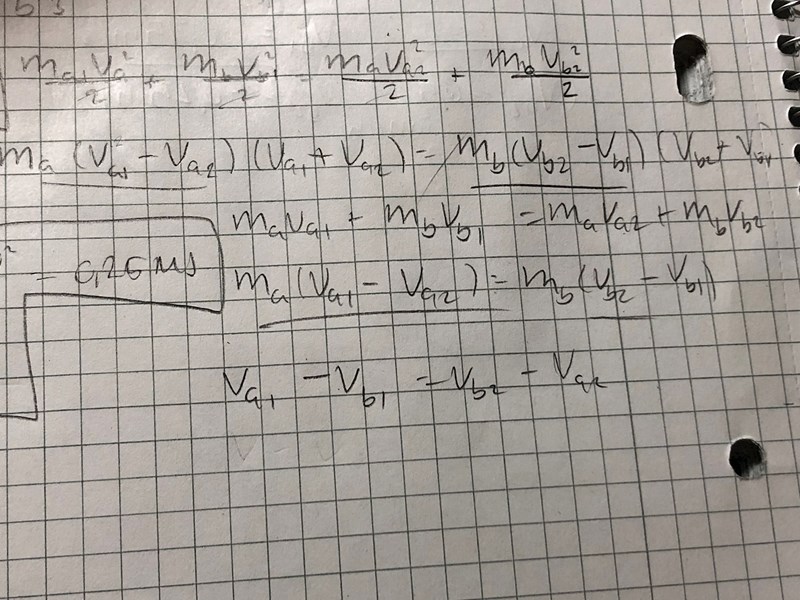 Jag förstår formeln som jag har härlett och jag kommer med hjälp av den fram till rätt svar. Jag förstår dock verkligen inte hur rörelsemängden eller rörelseenergin bevaras?! Om tågets hastighet är konstant och bollens hastighet går från -20m/s till 120m/s måste ju rörelseenergin öka. Rörelsemängden kan ju inte heller vara densamma! (Och dessa ska ju vara samma före och efter en elastiskt stöt.)