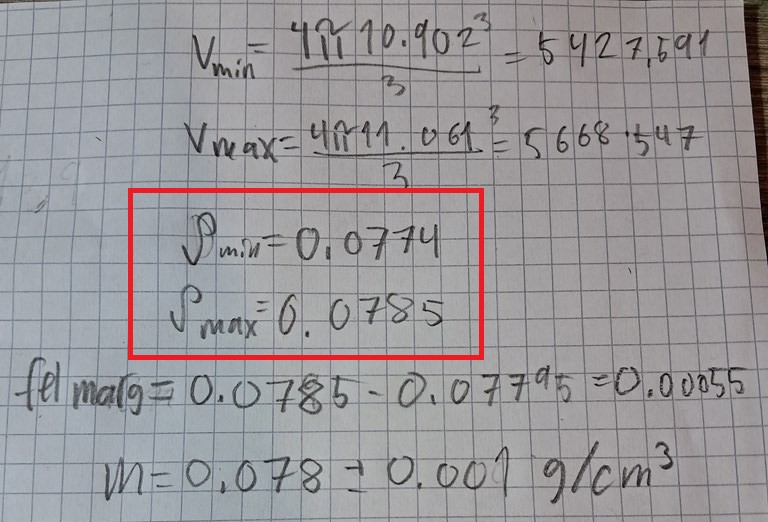 Sedan är felmarginalen hälften av skillnaden mellan dessa densiteter, eftersom du svarar med medeldensiteten och ett plus/minus.