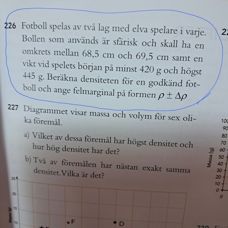 Fotbolls densitet, felmarginal. Upg226 Impuls