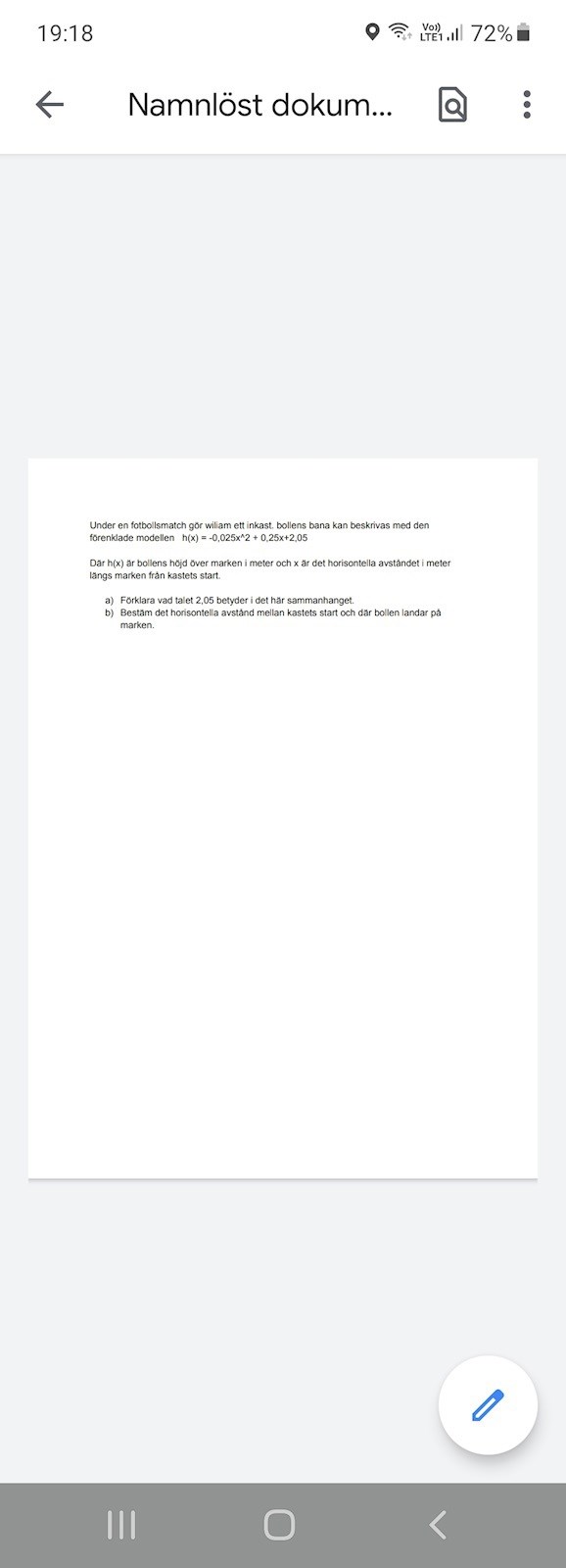 Sedan motivera vilken av dina två lösningar på x du väljer. Båda beskriver ju nollställen till funktionen men i detta fall blir det mest logiskt att han kastar i positiv riktning 15m framåt