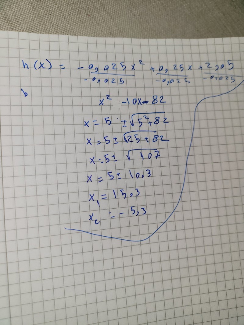 det horisontella avstånd mellan kastats start och där botten landar är 15.3. Jag menar att det kan inte vara -5,3.
