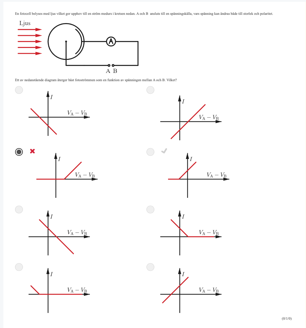 Sen tror jag det är så att när Va-Vb är tillräckligt negativ så motverkar den fotocellens spänning och strömmen blir noll.