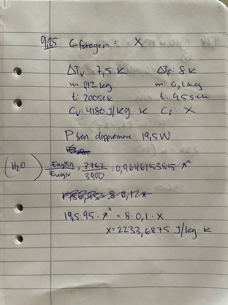 Detta är min uträkning. Svaret som facit ger är 2,1 kJ/(kg•K)