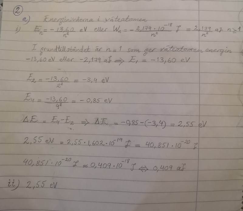 Hej, på fråga 2, uppgift b) får jag fel frekvens, trots att foton energin som jag beräknat i a) var rätt.