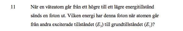 Fotonens energi när väteatomen går från andra exciterade tillståndet till grundtillståndet?