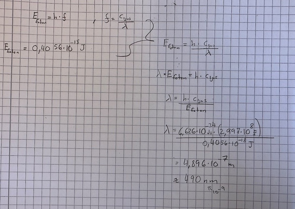 Sambandet mellan fotonens våglängd och energi har du koll från tidigare uppgifter, eller hur?