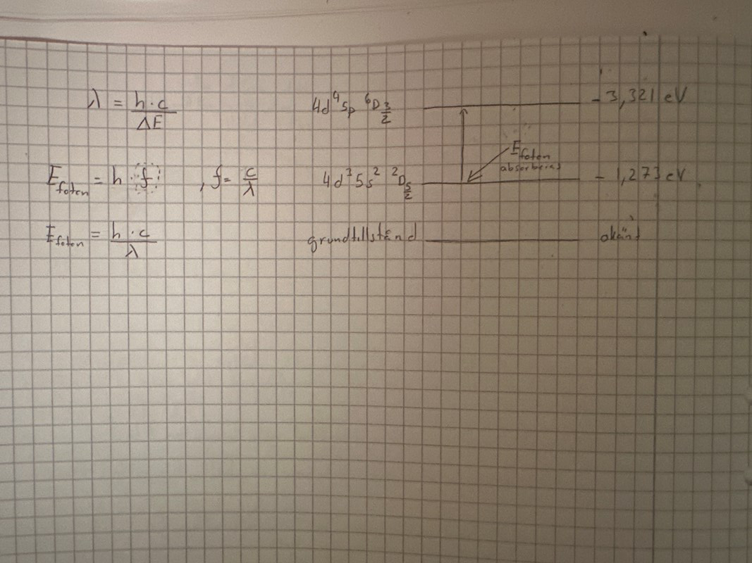 när atomen flyttas till en högre nivå måste den absorbera energi. Det är Efotoner? Så hur blir det med våglängden i absorbtion