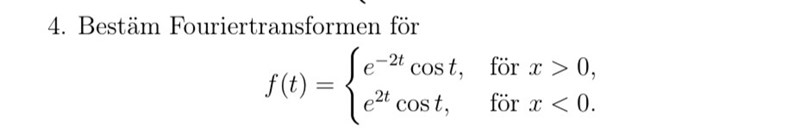 Är meningen att man bestämmer fouriertransformen utifrån definitionen? Eller har ni något formelblad som ska användas här?