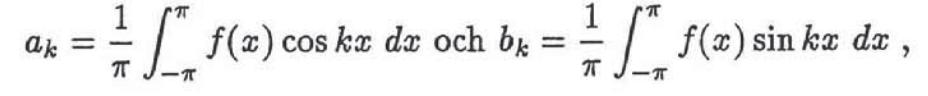 Så det jag behöver göra är att bestämma koefficienterna a_k och b_k men jag vet inte riktigt hur jag ska gå till väga.