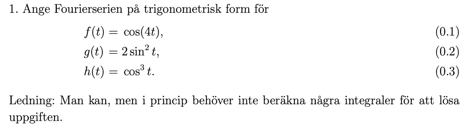 f blir då trivial, eftersom det redan i sig är en fourier-serie med en enda term.