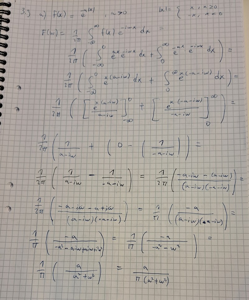Ja inversa transformen har gåtts igenom,men jag är ny på detta. Jo jag stötte på det och har gjort någon uppgift om just e^-a|x| eller e^a|x| (minns ej)
