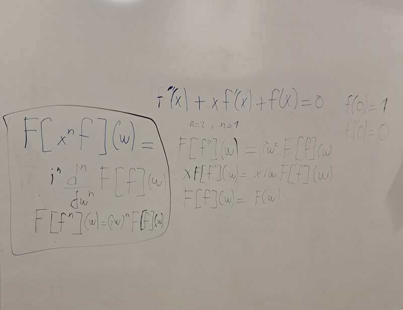Tänk igenom vad fouriertransformen till xf’(x) skall bli?