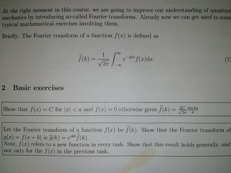 Har precis börjat en kvantmekanikkurs och som introduktion till den matematik som kommer användas under kursen har vi börjat gå igenom lite Fouriertransformationer.