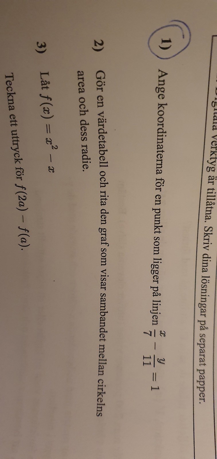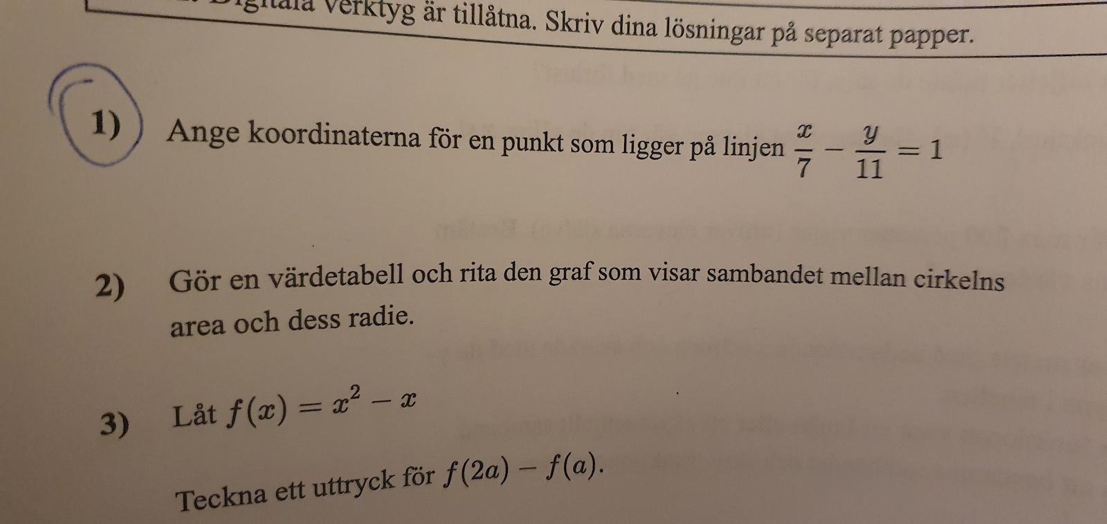 Om du vill bestämma en koordinat på en linje kan du pröva att välja ett värde på x och sen räkna ut vad y får för värde.
