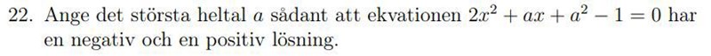 Ser ju spontant att alla heltal a som är större än 2 ger ett negativt rotuttryck vilket ger komplexa rötter. Provar med a = 1 och det ger ju:
