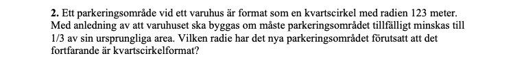 Hittills har jag försökt hitta den ursprungliga arean och dela den på 3, kom då fram till följande:
