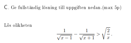 Arbetsmyran skrev:Jag fattar inte varför min lösning/lösningsmetod är fel. Jag gör bara "klassiskt" där jag sätter alla på samma bråkstreck och sen gör teckentabell. Dock tror jag detta blev ganska ineffektivt, då det tog lång tid/ mycket att skriva (vilket man kanske inte hinner på själva provet).
