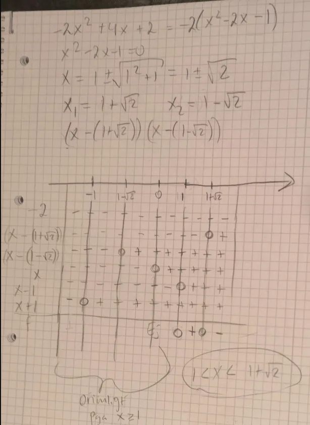 Jag fattar inte varför min lösning/lösningsmetod är fel. Jag gör bara "klassiskt" där jag sätter alla på samma bråkstreck och sen gör teckentabell. Dock tror jag detta blev ganska ineffektivt, då det tog lång tid/ mycket att skriva (vilket man kanske inte hinner på själva provet).