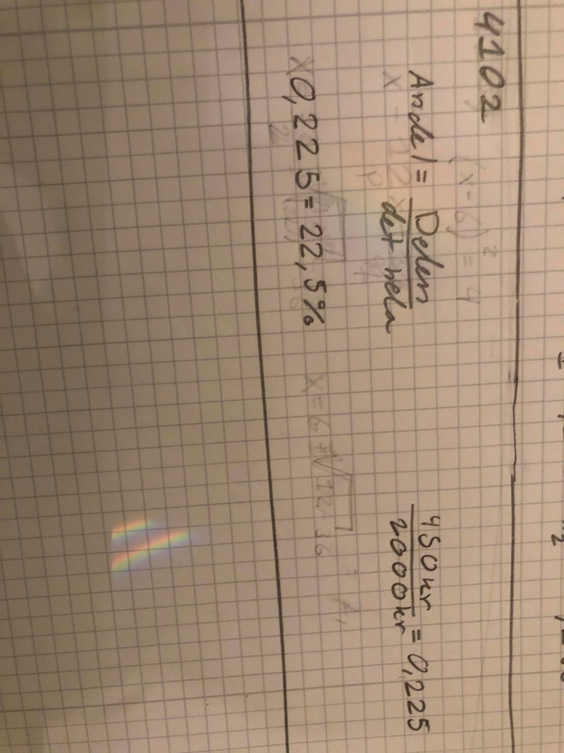 Formeln är följande: Andel = "Delen"/"Det hela".