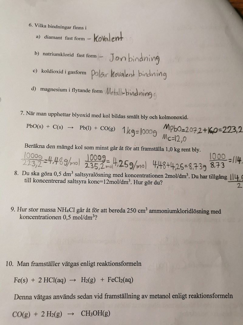 För jag har n som är 0.5 dm³ saltsyralösning, c som är 2 mol/dm³ och jag har tillgång till koncentrerad saltsyra konc = 12mol/dm³. Är det inte bara ställa upp det som en ekvation?.