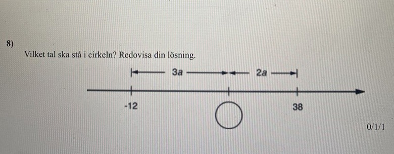 Ja. Avståndet 50 är lika med 5a, det ger att a är 10. Så vilket tal ska stå i cirkeln?