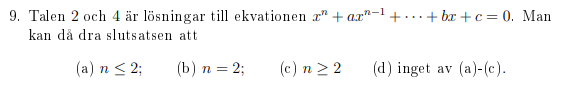 Egentligen är väl det en kuggfråga mtp. att 2 och 4 kan vara dubbelrötter.