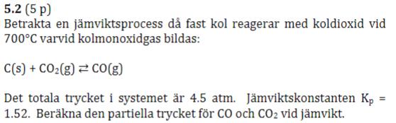 Zockimon skrev:Ja, vanligtvis finns det 2 CO i ekvationen för Boudouard-reaktionen.