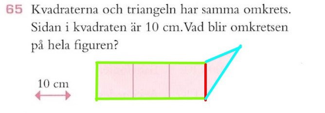 hjälpmig97 skrev:Bubo skrev:Man menar att en triangel har samma omkrets som en kvadrat.