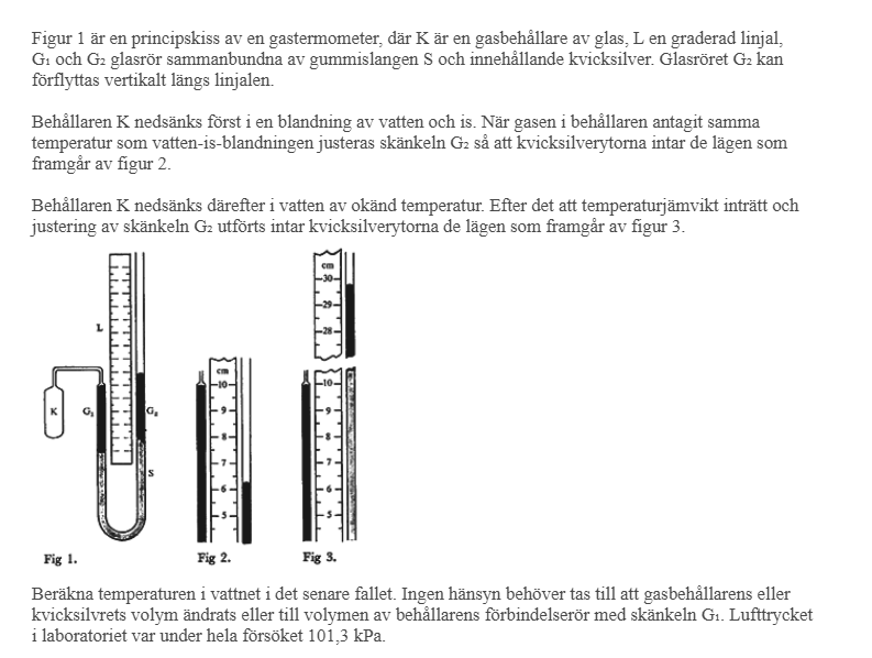 Jag tror att det bara var en slump att lufttrycket i laboratoriet var exakt 101,3 kPa. Det kunde ha varit hur mycket som helst. Men du kan inte beräkna temperaturen utan att veta lufttrycket.