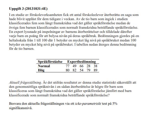 Skulle behöva hjälp med denna uppgift, min fråga är om det parvisa observationer eller ej? Samt om det är parvisa observationer ska den kritiska gränsen utgå ifrån 10 eller 5 barn?