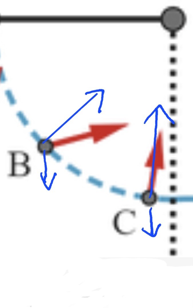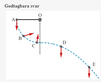 Hej! Har en fråga om cirkelrörelse, borde inte pilen för B vara riktad mot O precis som C eftersom det alltid ska vara en acceleration mot center i cirkelrörelse?