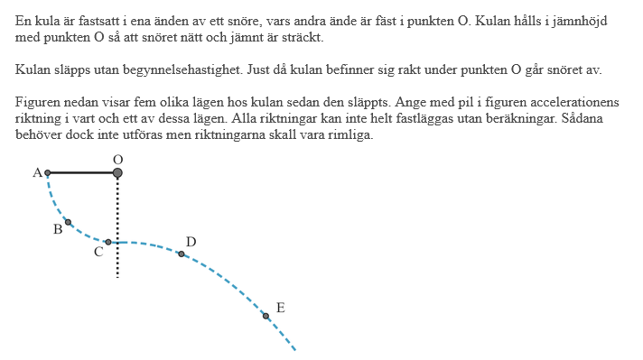 Så länge kulan sitter fast i snöret så påverkas den även av en snörkraft riktad in mot O.